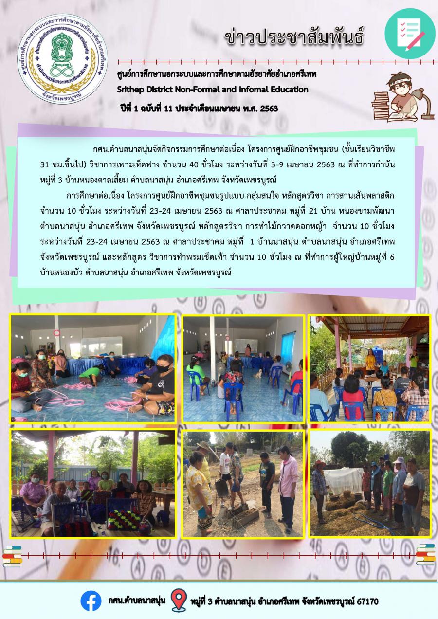 กศน.ตำบลนาสนุ่น สร้างคน สร้างอาชีพ เพื่อคนตำบลนาสนุ่น เรียนรู้ตลอดชีวิต