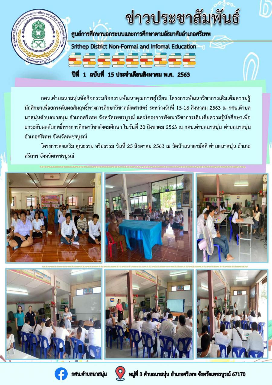 กศน.ตำบลนาสนุ่น สร้างคน สร้างอาชีพ เพื่อคนตำบลนาสนุ่น เรียนรู้ตลอดชีวิต